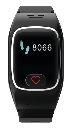Drücken Sie den Steuerknopf, um Ihre JAMES-Notrufuhr „aufzuwecken“, falls der Bildschirm schwarz ist. Durch kurzes drücken auf den Steuerknopf können Sie jetzt durch die Funktionen Ihrer Uhr navigieren.
