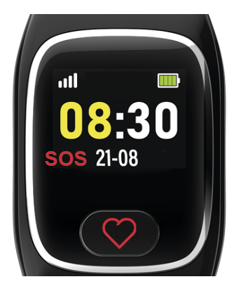 Nach einem Alarm bleibt die Uhr 1 Stunde im Alarmmodus und nimmt Anrufe automatisch an. In dieser Zeit wird am Uhrzeit-Bildschirm das SOS-Symbol angezeigt. Wird der Alarm in der JAMES App / im Webportal geschlossen, endet der Alarmmodus der Uhr früher.