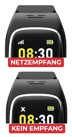 Ihre JAMES-Notrufuhr hat eine eingebaute SIM-Karte und verbindet sich automatisch mit dem besten Mobilfunknetz. Im linken oberen Eck sehen Sie den Netzempfang.