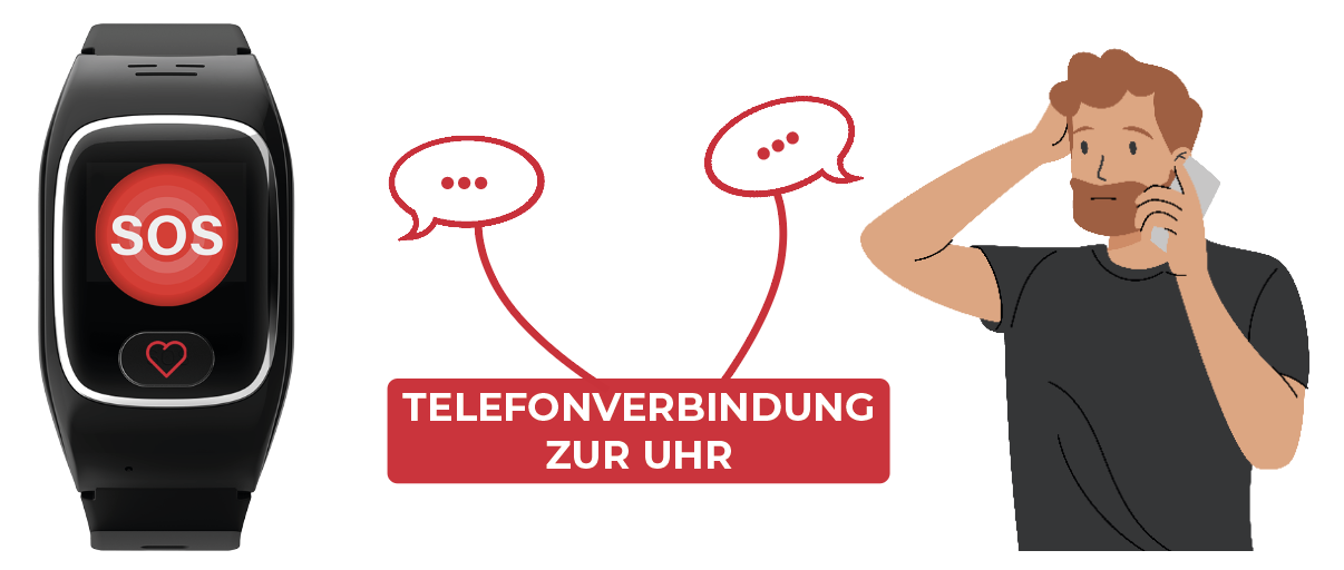Nach Annahme des Alarms, wird eine Telefonverbindung zur Uhr hergestellt. Sie funktioniert wie ein Mobiltelefon: Der Notrufkontakt kann direkt mit dem Uhrenträger sprechen.